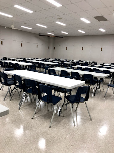456 chairs, blue plastic